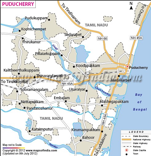 Puducherry: Total area: 290 Sq. Kms. Puducherry is bounded